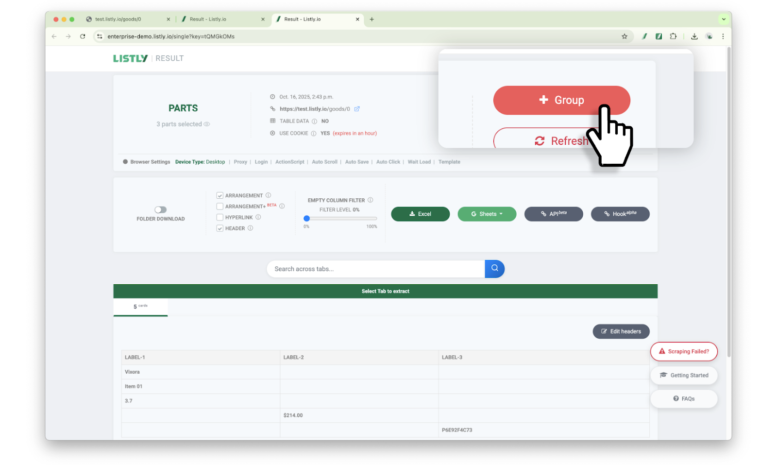 Cuando se publican nuevas publicaciones o productos en una página de lista, la URL de esa subpágina se agrega automáticamente al grupo y procede la extracción. Al usar la función de recopilación automática de subpáginas, puede detectar automáticamente las listas modificadas y recopilar nuevos datos sin necesidad de recopilar o actualizar direcciones una por una.