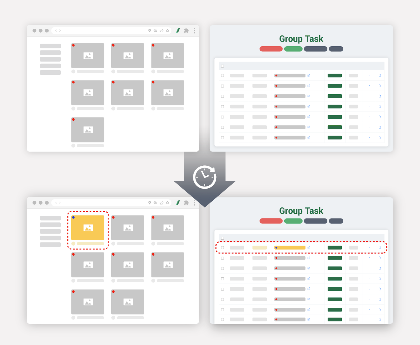 Cuando la tarea superior se ejecute según el programa configurado, si hay un nuevo elemento registrado en la página de lista, esa URL se actualizará automáticamente en el grupo inferior.
