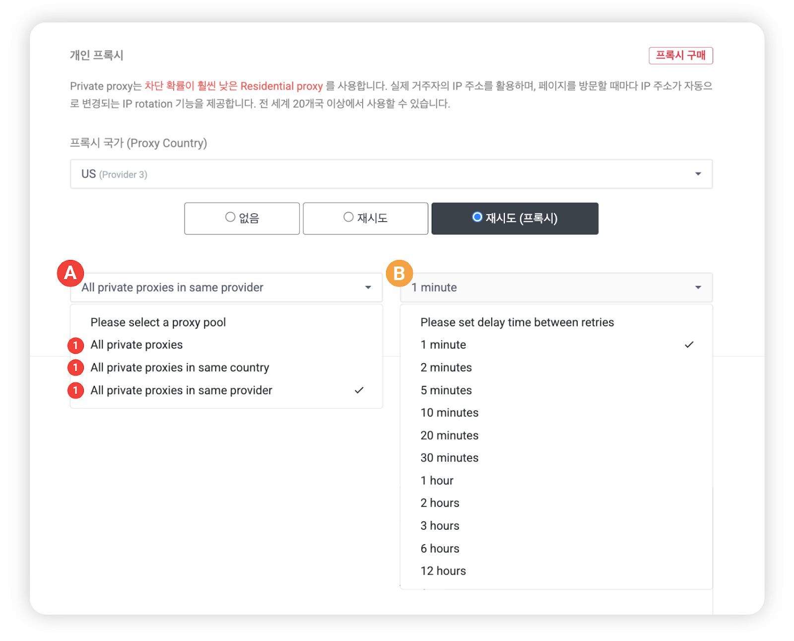➌ Todos los proxies privados del mismo proveedor (All Private proxies in same providers): Solo usa proxies del mismo proveedor que el proxy seleccionado.