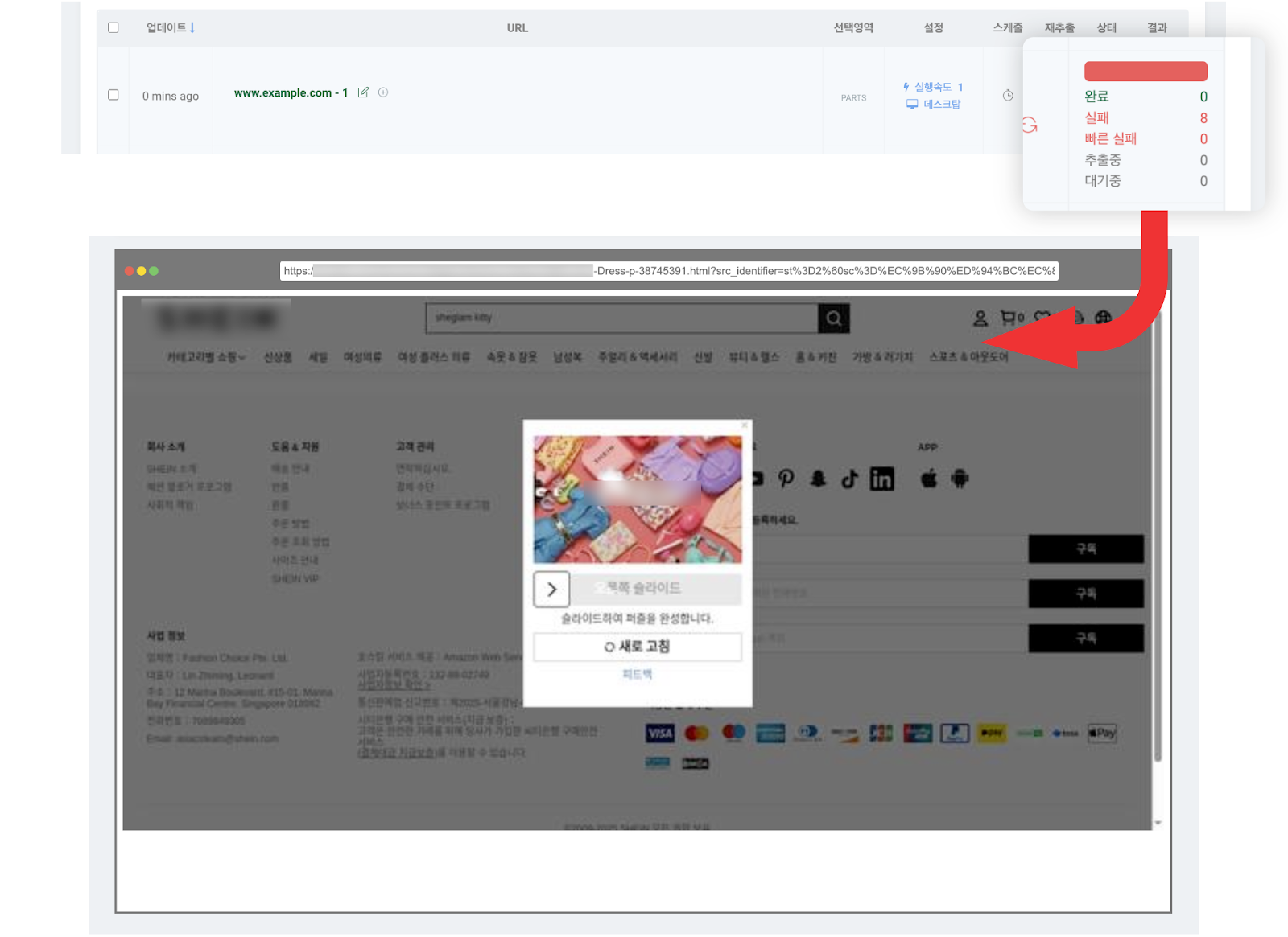 Referencia: Usando capturas de pantalla generadas automáticamente cuando falla la extracción de datos, puedes verificar el estado de la página en el momento de la falla y el código de error.