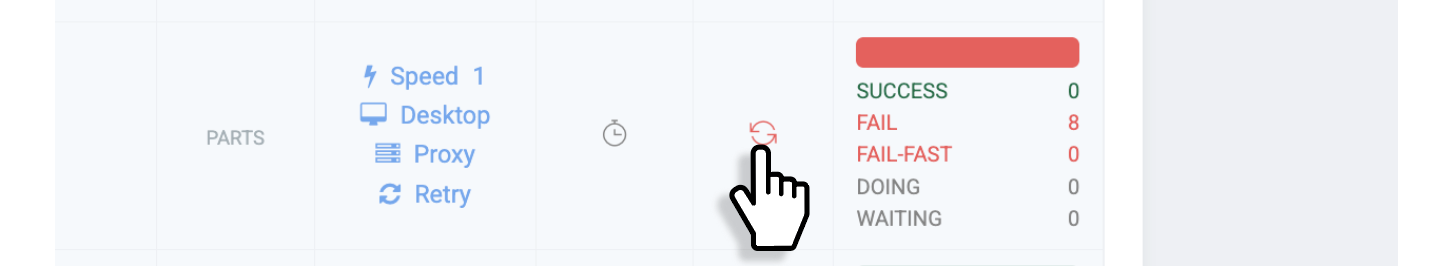 Cuando la recopilación falla debido a bloqueo del sitio web durante trabajos de extracción ejecutados a través del servidor como extracción de grupo, clic automático, desplazamiento automático, plantillas, tareas programadas, puedes aumentar la tasa de éxito del trabajo mediante la función de reintento automático de proxy.