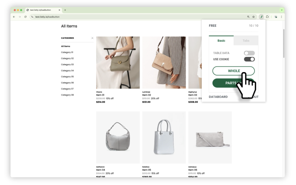 Es una función que puede extraer toda la información visible en la pantalla con un solo clic. Listly analiza automáticamente la página web y recomienda el patrón de datos óptimo. Use la función de extracción completa si desea extraer datos de manera simple y rápida.