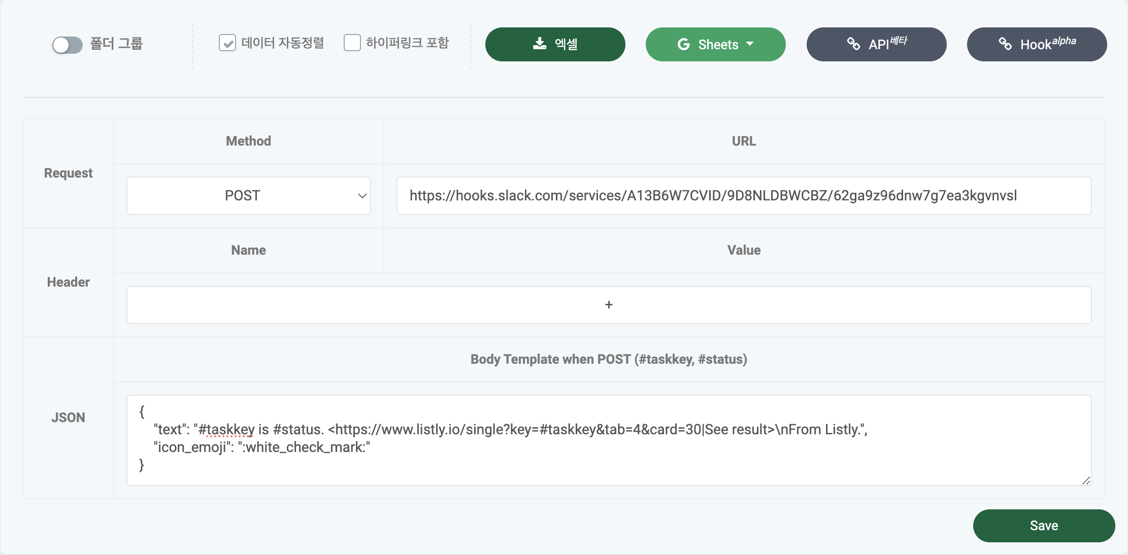 Es una función que le permite recibir notificaciones en tiempo real cuando se completa algún trabajo o cuando ocurre un evento específico en una aplicación web. Si lo integra con aplicaciones de mensajería empresarial como Slack después de la extracción de datos en Listly, puede recibir notificaciones en tiempo real cuando se complete la extracción de datos.