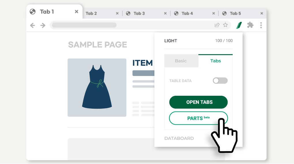 탭스는 브라우저에 열려있는 모든 탭에서 일치하는 부분을 한 번에 추출할 수 있는 기능입니다. 여러 페이지를 동시에 추출 할 때 차단 위험이 적고, 작업 과정도 간단합니다.