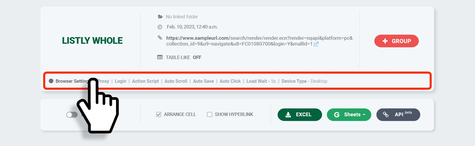 하지만 아래 이미지처럼 1 페이지에서 2 페이지로 이동해도 URL 주소가 변하지 않는다면, 액션스크립트를 이용해 데이터를 추출하고자 하는 개별 페이지의 URL 추출 후, 필요한 데이터를 수집하실 수 있습니다.