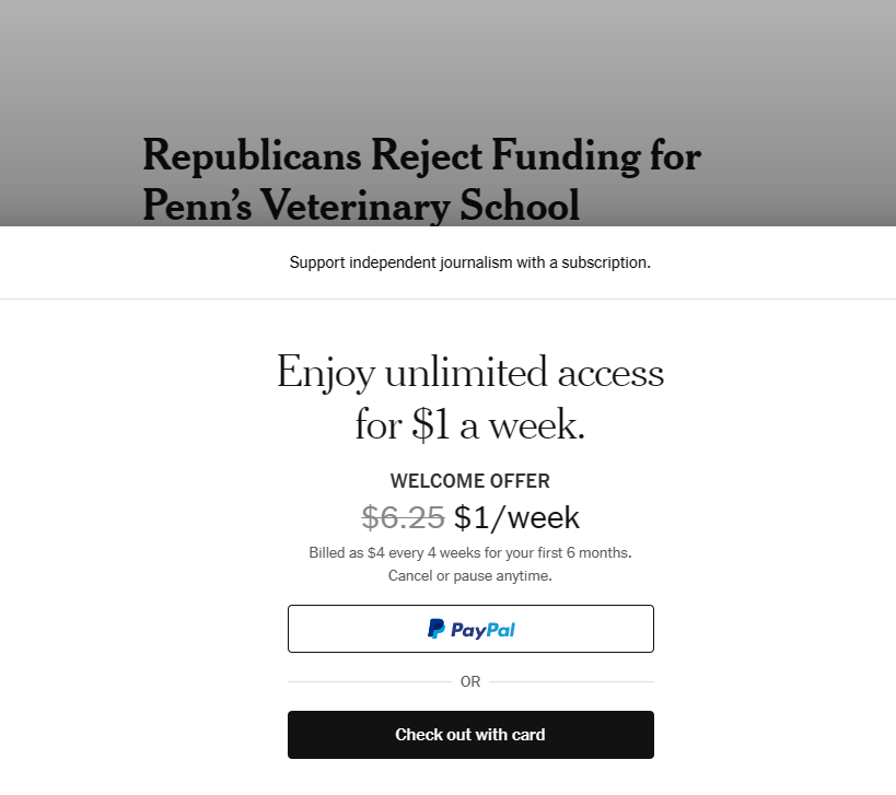 그러나 뉴욕타임즈처럼, 강제로 팝업메시지가 나타나면서 뒤편의 정보를 공개하지 않는 웹사이트라면 추출이 어렵습니다. 본문 일부만 보여주고 [Continue Reading] , 로그인, 혹은 결제를 진행해야 나머지 정보를 보여주는 경우를 뜻하는데요. 이 경우에는 팝업메시지를 무시하고 그룹추출을 하려고 해도 실패하게 됩니다. 해당 웹사이트에서 정보를 의도적으로 나타내지 않고 있기 때문이죠. 그렇기 때문에 먼저 팝업 레이어를 사라지도록 해결하신 뒤 추출 시도를 하시는 것을 권해드립니다.