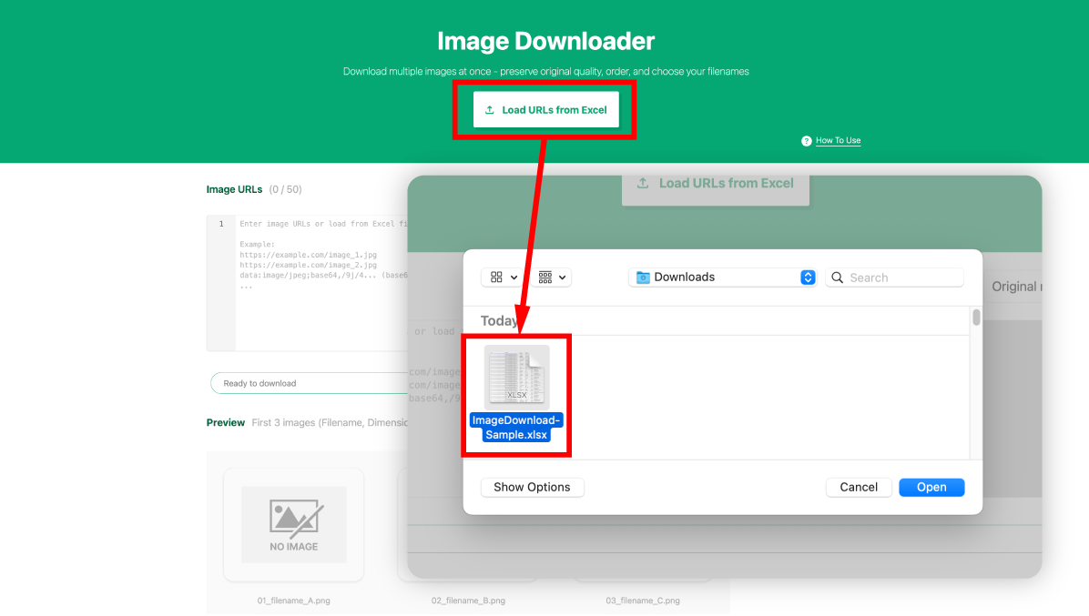 Q. 이미지 다운로더 사용시 엑셀 파일을 반드시 업로드해야하나요?