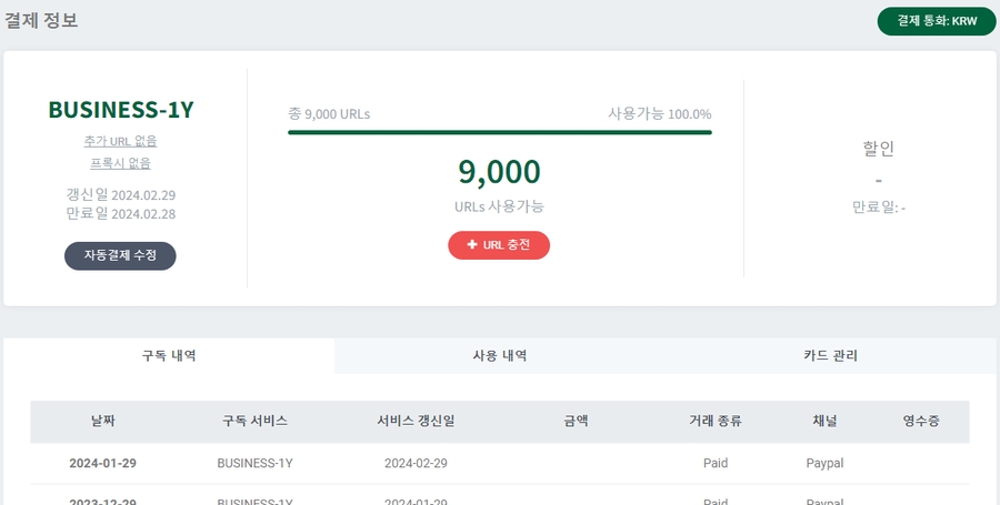 그 뒤 좌측 상단의 자동결제 수정 버튼을 클릭하신 뒤, 등록한 카드를 삭제하시면 됩니다.