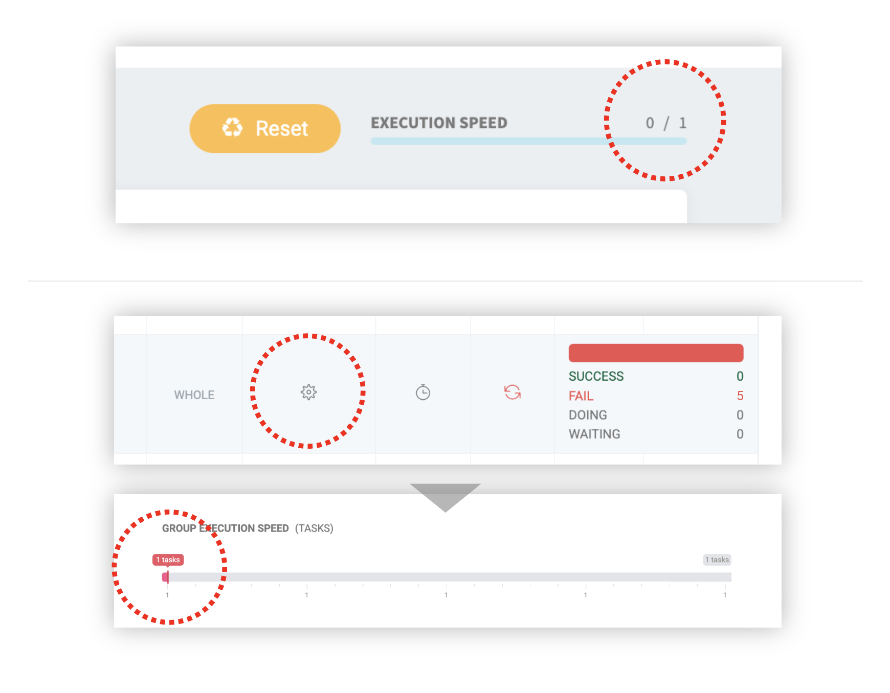 데이터보드 오른쪽 상단의 [실행속도] 혹은 [설정 → 그룹추출 속도]를 ‘1’로 낮춰보세요. 요청 간 간격을 늘리면, 과도한 요청으로 인한 로봇 감지를 피하는 데 도움이 될 수 있습니다.