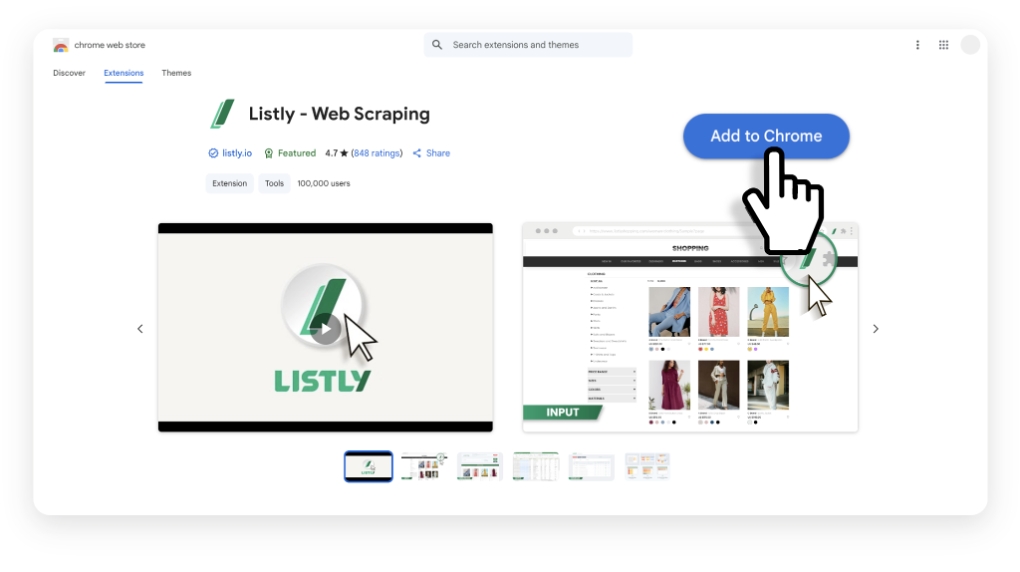 点击上方链接,或在各浏览器的扩展程序商店搜索「Listly」后,点击 [添加到 Chrome] 安装按钮。