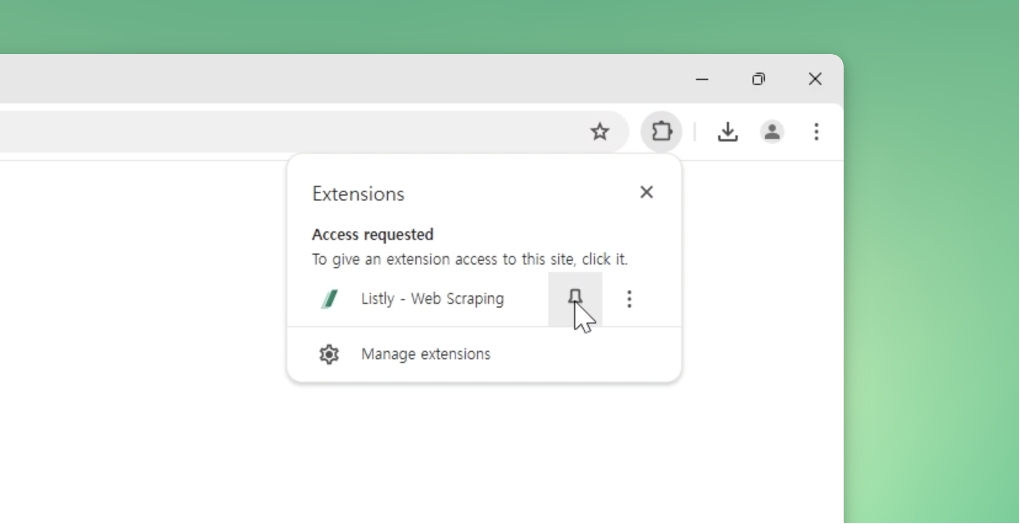 安装完成后,点击浏览器右上角的拼图图标,然后按 Listly 旁边的固定图标,将 Listly 固定在顶部。
