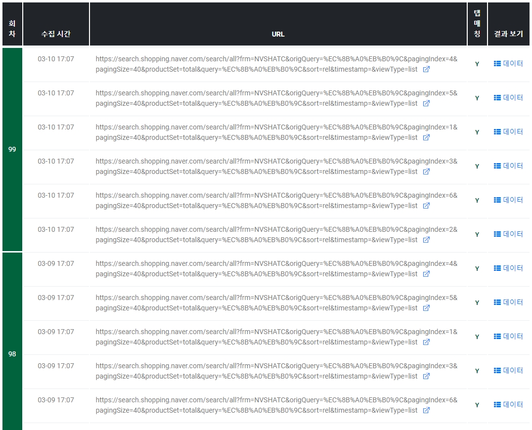 Log API:显示历次提取的所有数据。