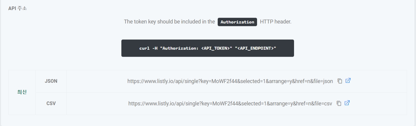 www.listly.io/api/single?key=<datakey>&selected=1&arrange=y&href=n&stack=vertical&file=csv