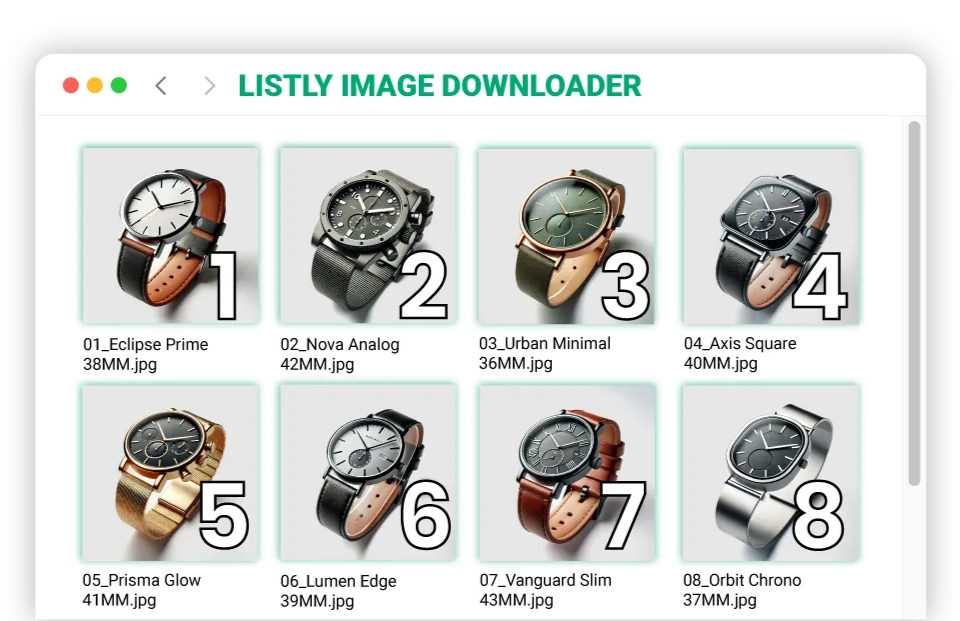 Listly Image Downloader 提供多种文件名选项,以便您选择适合任务的方法: