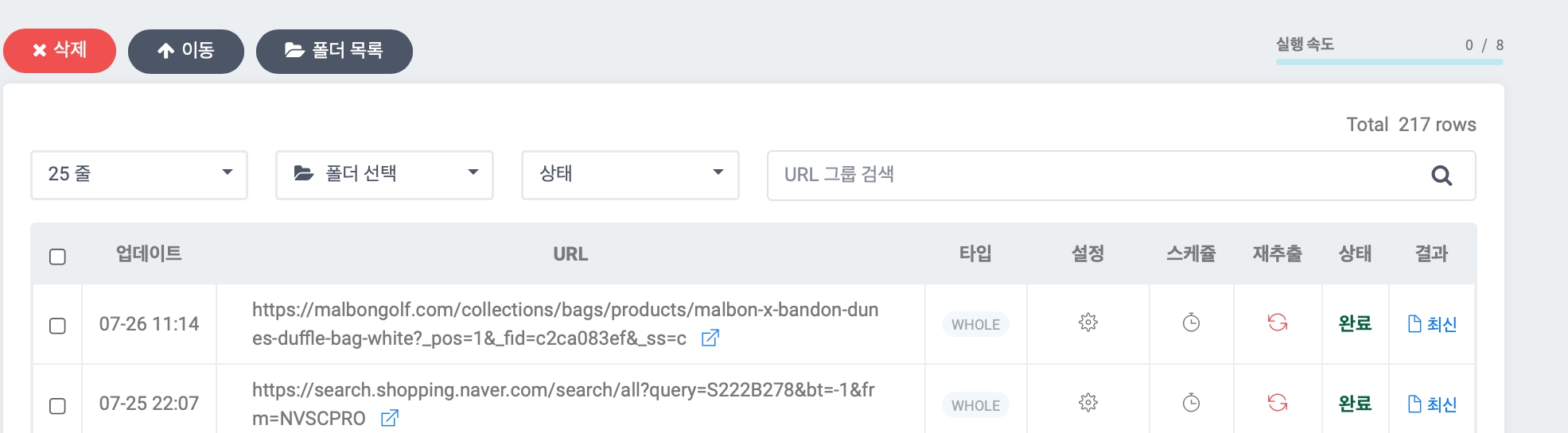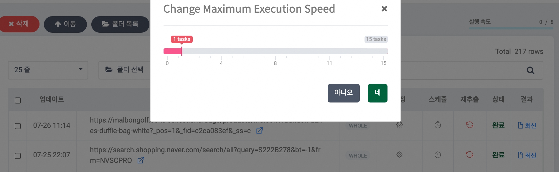 选择速度 1 意味着最慢的采集,选择 15 意味着最快的。这是一次采集 1 个 URL 与一次采集 15 个 URL 的区别。