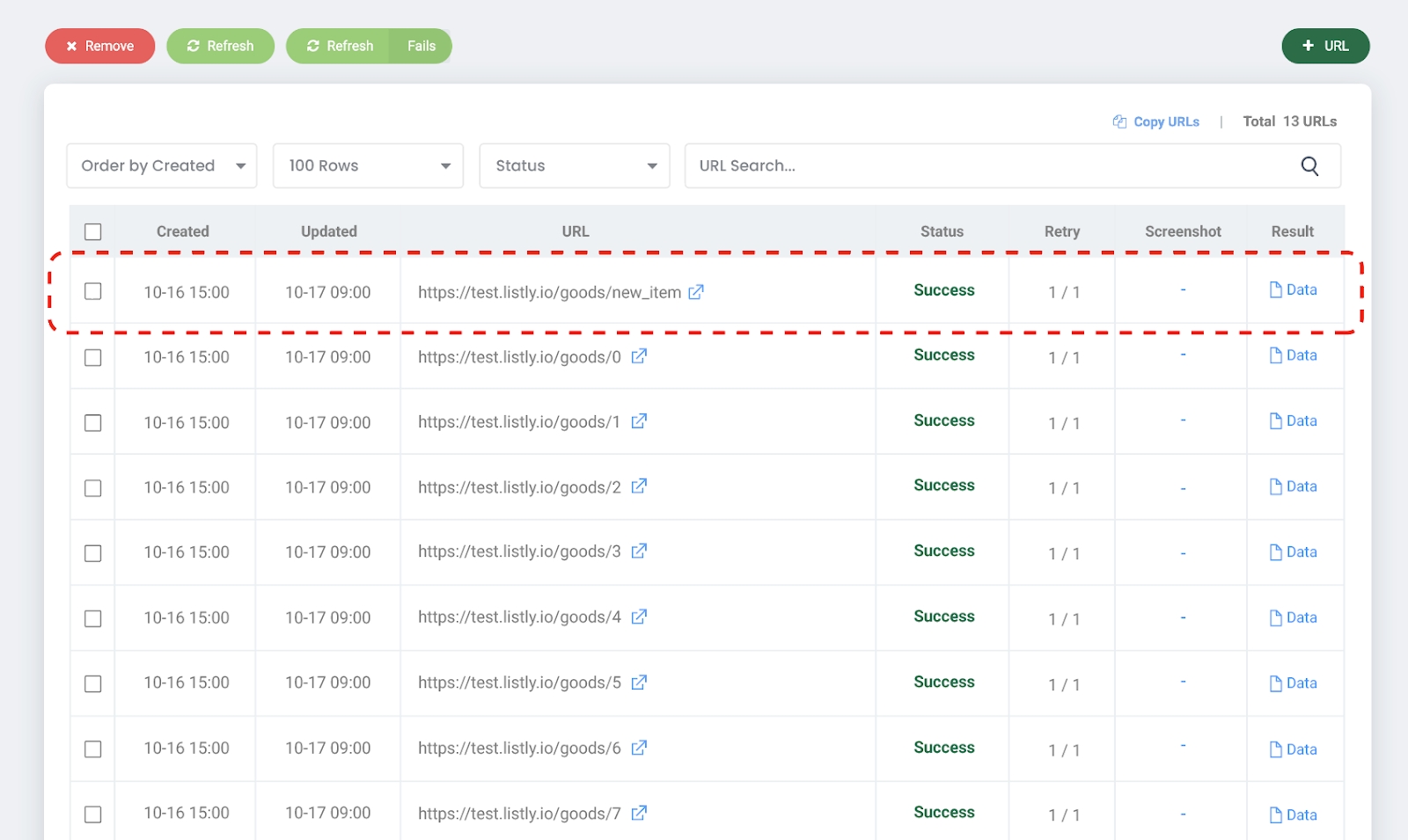 当父任务按设定的调度运行时,如果列表页面上注册了新项目,这些 URL 将自动更新到子批量中。