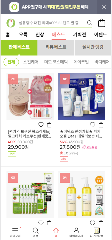 實際國內使用者的案例。使用者想提取如右圖點擊「護膚」類別時出現的內容,但首次存取該頁面位址時,如左圖顯示「全部」類別商品是預設值。