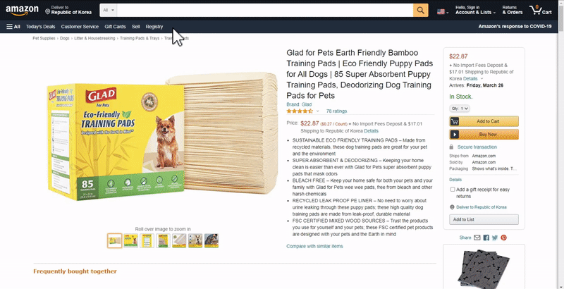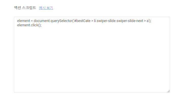實際國內使用者的案例。在購物網站變更配送地址的設定。需要點擊 → 等待輸入框 → 輸入郵遞區號 → 點擊確認按鈕 → 等待新頁面載入等多個動作。因為配送地址不同,商品詳細資訊(價格、選項等)也會變更,所以需要對所有收集的商品套用這樣的動作。下方程式碼由 LISTLY TEAM 撰寫提供,使用者只需在群組設定 → 操作腳本中貼上即可一次套用。