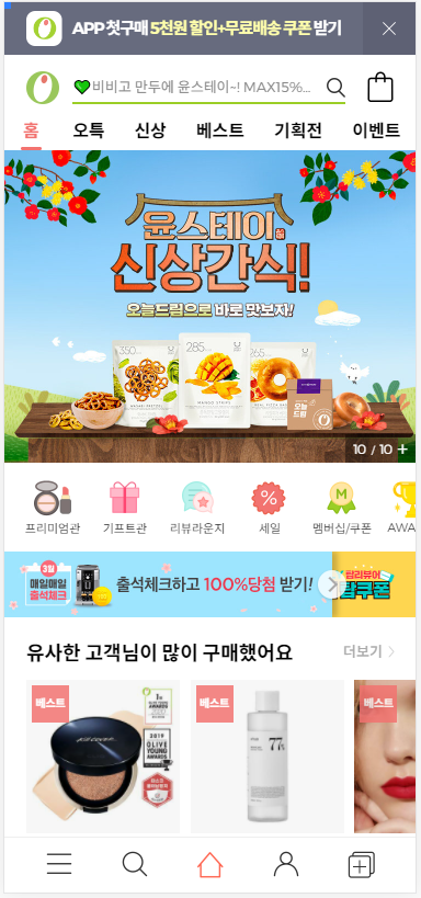 首先為了提取資料,在一般 PC 進入 Olive Young 行動版頁面(下方左側)時,會自動連線到桌面版頁面(下方右側)。確認網址列,網址也自動變更了。