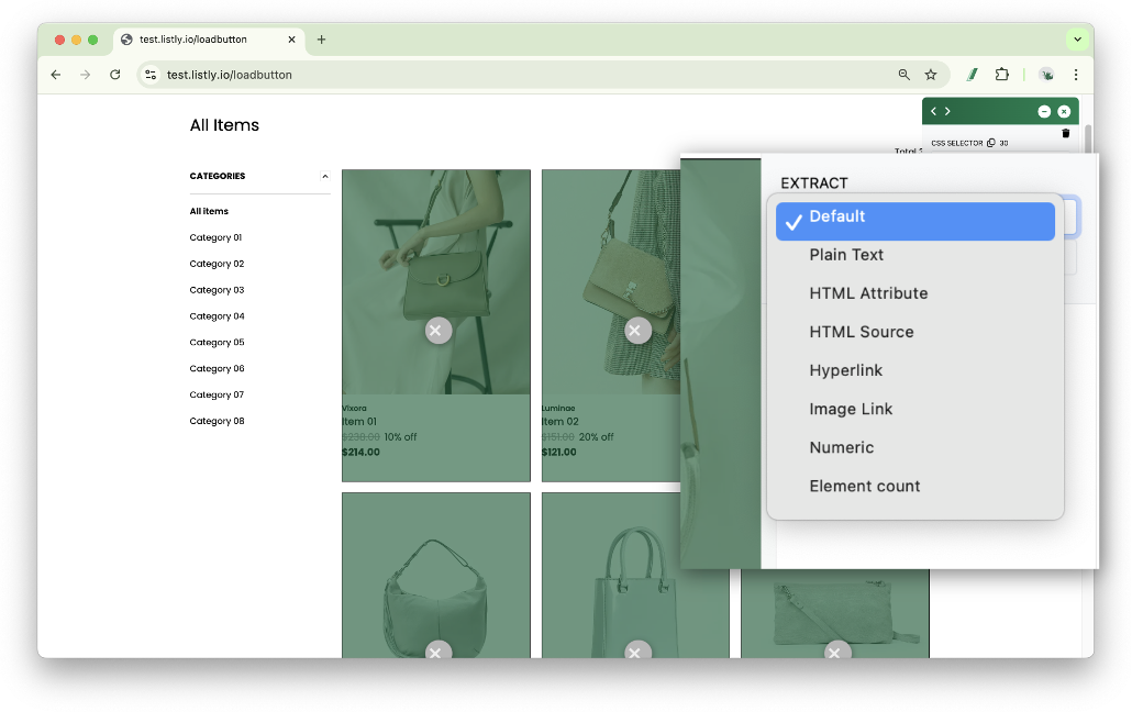 在目標頁面點擊 Listly 圖示
