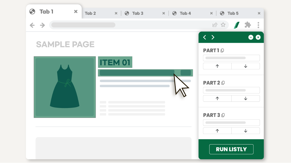 Tabs 是一個能夠一次從瀏覽器中所有開啟的分頁擷取相符部分的功能。同時擷取多個頁面時被封鎖的風險較低,操作過程也很簡單。