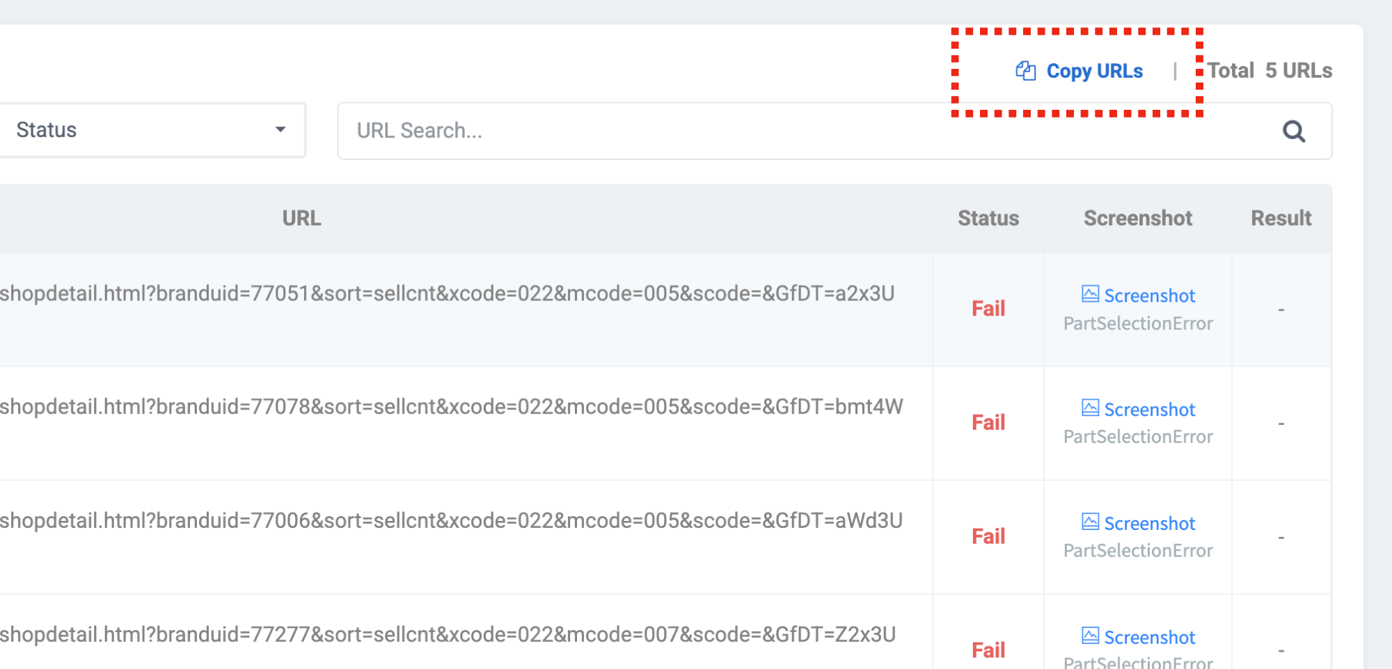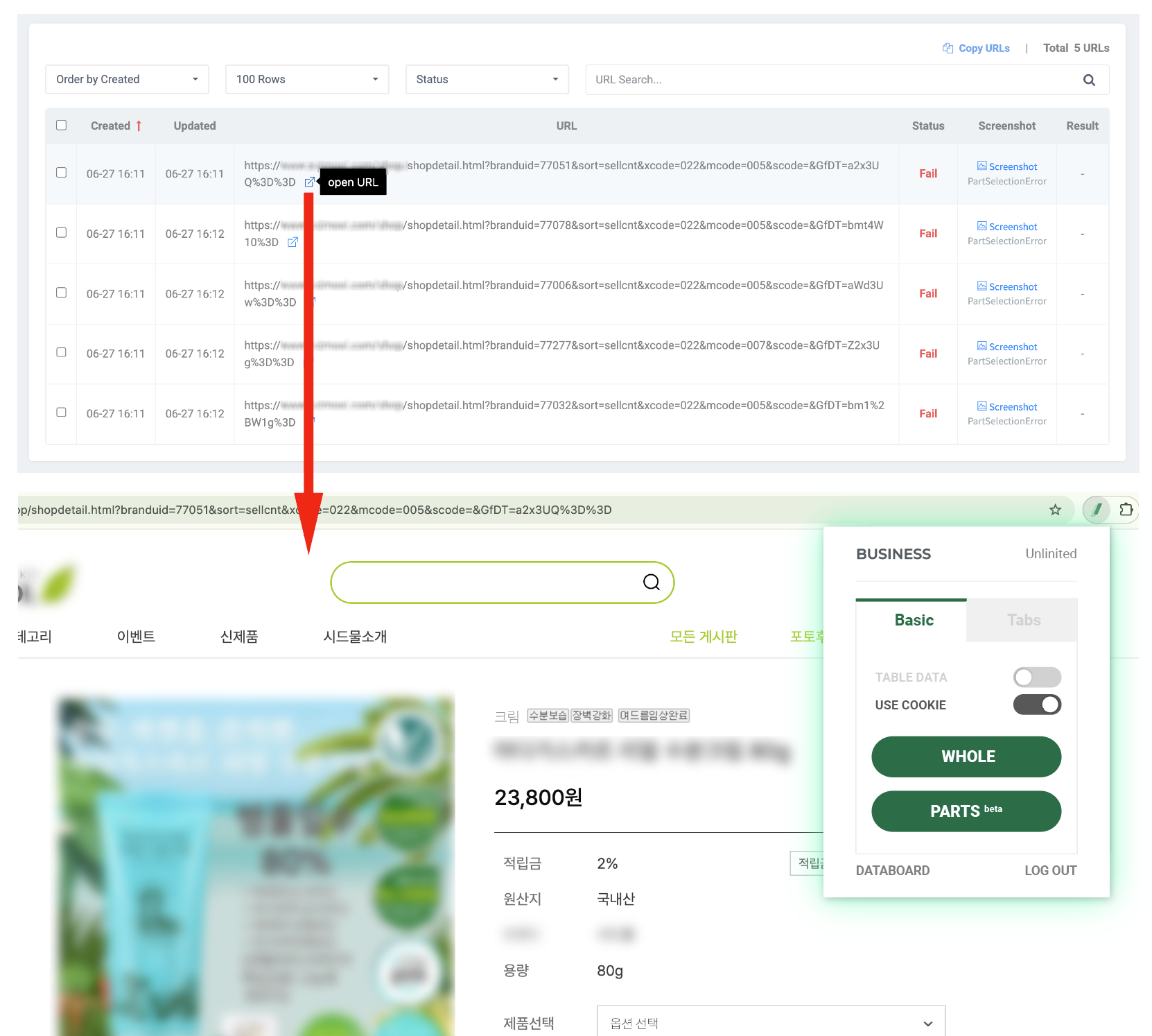 如上所示,如果失敗截圖中顯示要提取頁面的正常畫面,請檢查以下內容。