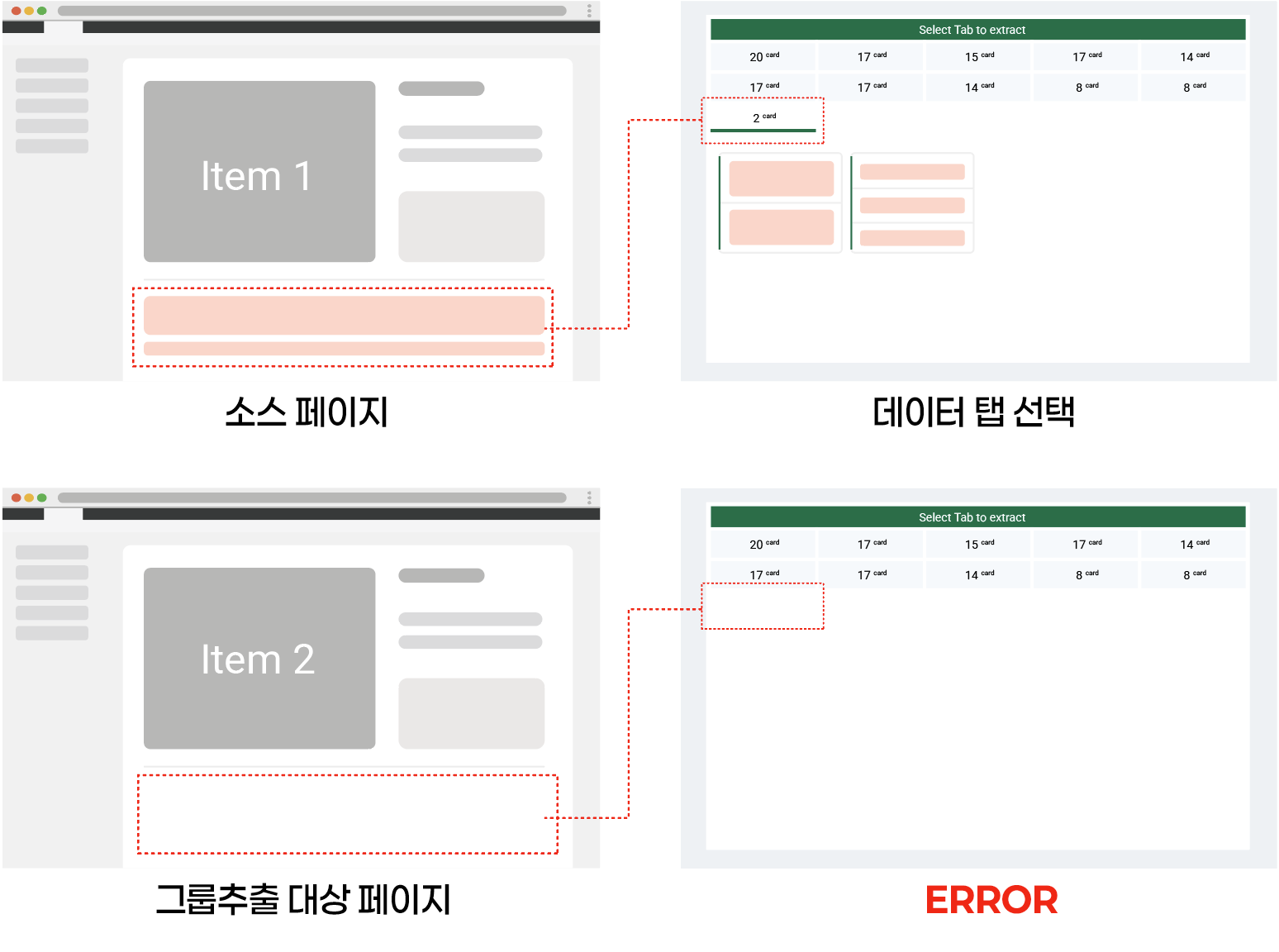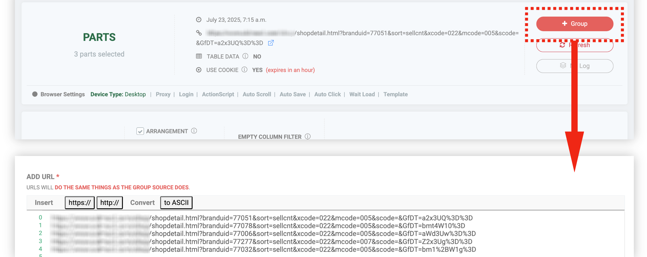 如果群組提取失敗,首先檢查最初提取頁面的頁面結構是否與您為群組提取輸入的網址相符。