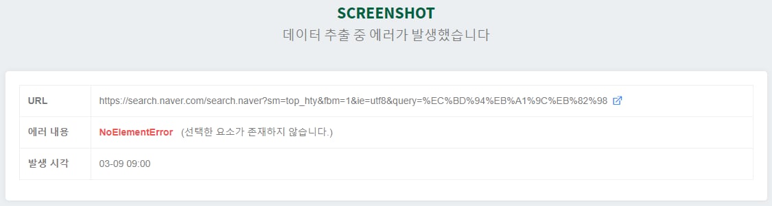 如果資料提取失敗,會自動生成截圖以分析失敗原因。為了瞭解整體會發生哪些錯誤,我們整理了失敗訊息。