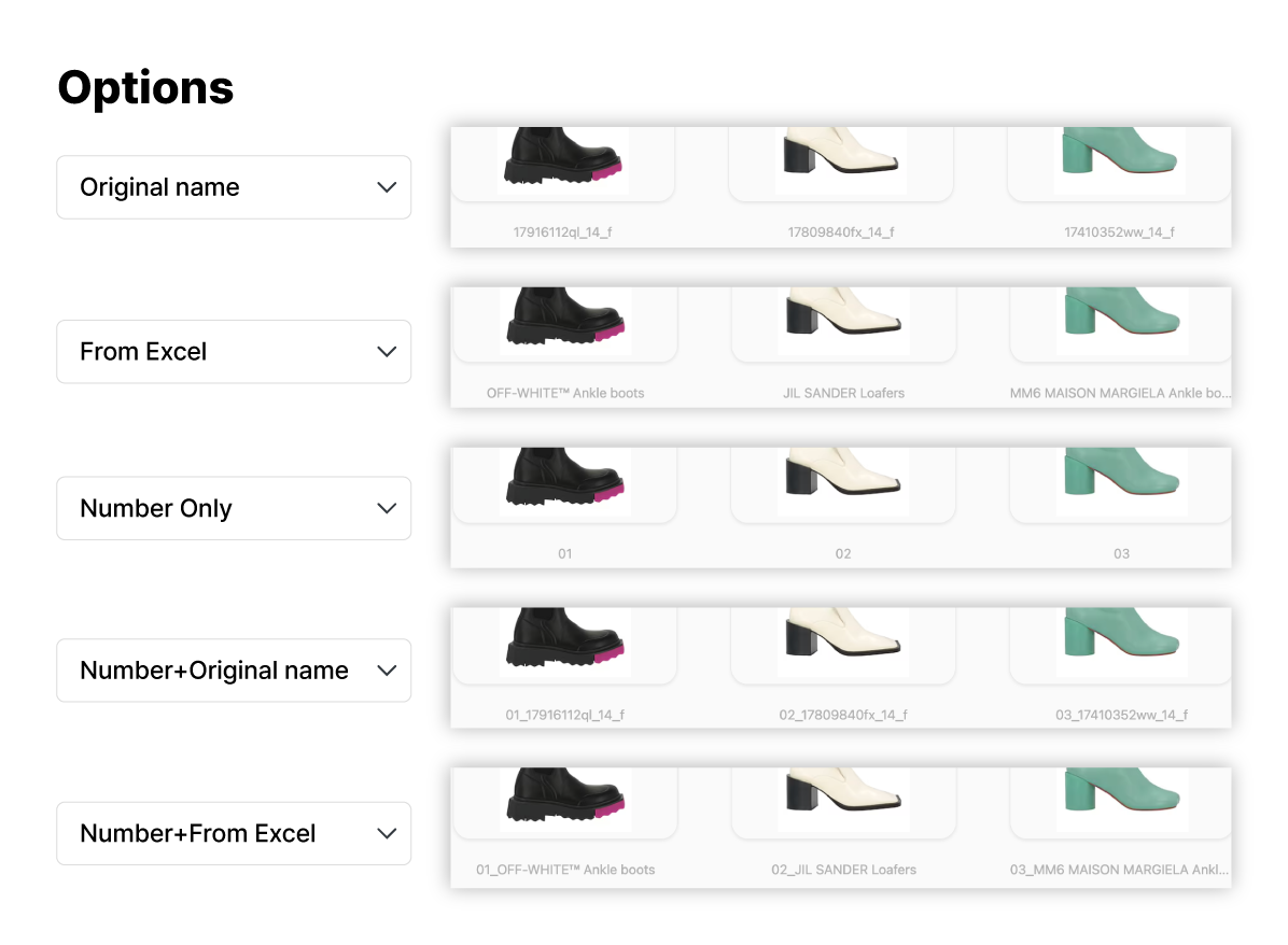 Listly 圖片下載器提供多種檔案名稱選項,讓您可以選擇適合任務的方式: