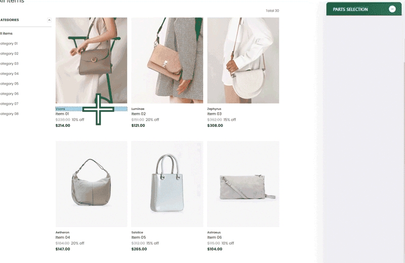 You can also automatically select repeating elements by item box unit. When you select the first box and then the consecutive second box, you can select all items with the same structure at once. However, in this case, the accuracy of extraction results may be relatively lower, so we recommend selecting by 'maximum item unit'.