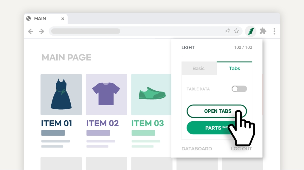 A feature that lets you open multiple pages for extraction as individual tabs at once with simple button and keyboard controls. Using the [Open Multiple Tabs] feature, you can open all links within a dragged area as separate tabs simultaneously.