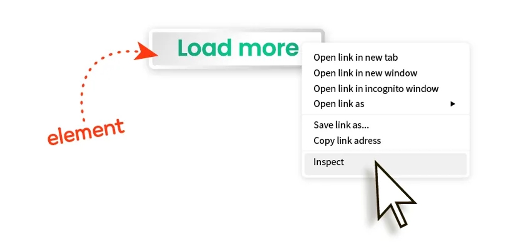 (1) 버튼 혹은 입력창 등의 요소 위에서 마우스 오른쪽 버튼을 클릭하고 [검사]를 선택합니다.