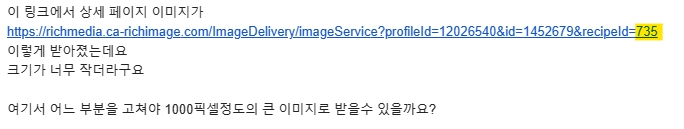 이커머스 웹 사이트에서는 썸네일 (작은 이미지), 원본 (큰 이미지) 등 다양한 해상도의 이미지를 사용합니다. 그런데 이 때 다운로드받은 이미지의 해상도가 낮으면 더 세세한 부분까지 수정 및 추가 작업을 하기 어려울 수 있어요. 하지만 걱정마세요! 리스틀리에서 한 가지 팁을 알려드릴게요. 대부분의 경우, URL 주소값을 조금씩 변경하면 해상도의 크기를 조절할 수 있습니다. 주소에 옵션 값을 달리해 여러 해상도의 이미지를 제공하는 경우가 대부분이기 때문인데요. 물론 URL 주소에서 이미지 크기를 변경하는 옵션은 웹 사이트마다 다르고, 임의로 정해지는 부분이라 특별한 패턴이나 매뉴얼은 없습니다. 하지만 이미지 데이터 주소 값을 추출한 후, 아래 노란색으로 표시된 것처럼 공통적으로 변화하는 부분의 숫자값을 조정하면 해상도를 높이거나 줄일 수 있습니다. 아래 이미지는 예시이며, 직접 이미지 URL을 변경해 보시면서 해상도를 조정해보시기를 권해드립니다.