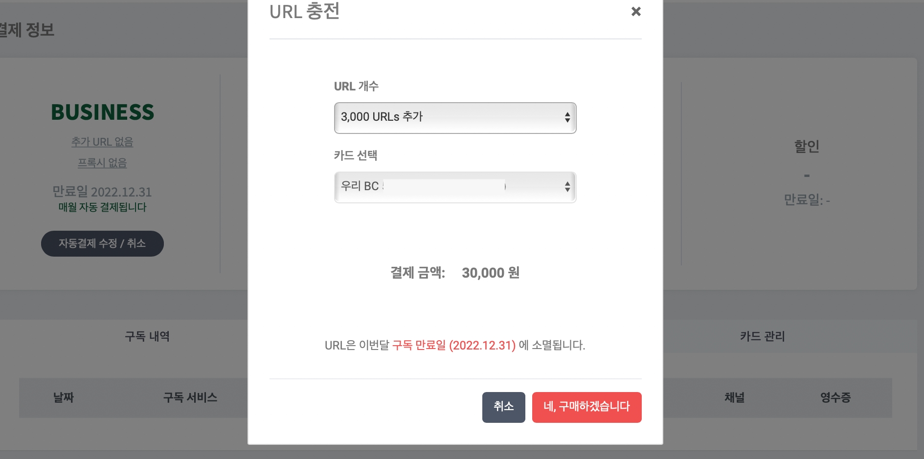크레딧(URL)을 추가로 충전하고 싶어요.