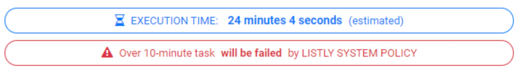 리스틀리 비즈니스 플랜의 추출 작업은 태스크당 최대 10분까지만 실행되도록 제한되어 있기 때문에, 데이터 추출 작업 시간이 오래 걸릴 경우 해당 에러가 발생할 수 있습니다.
